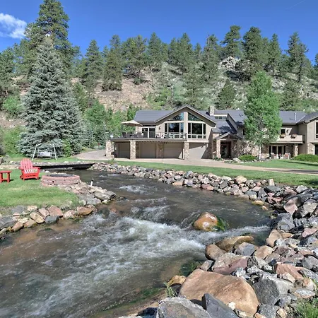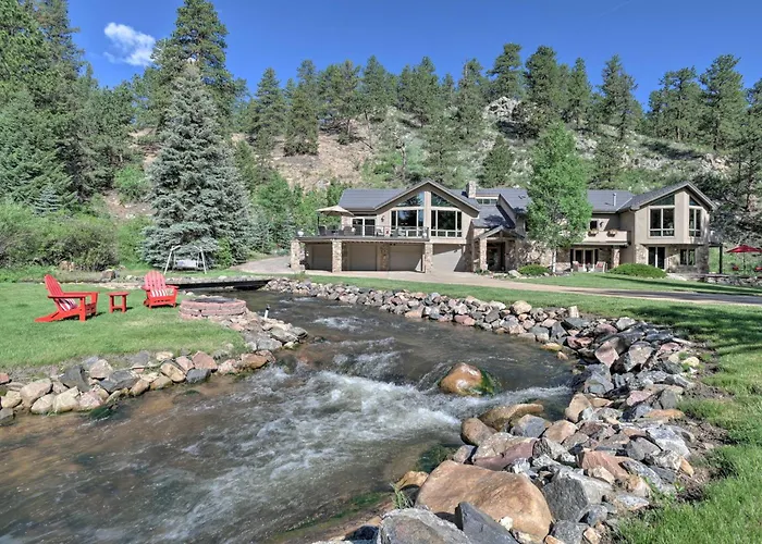 Situated 10 minutes by car from Bergen Peak, the 5-bedroom Stunning Evergreen Mountain Home On Private Stream invites guests to relax at a patio.
